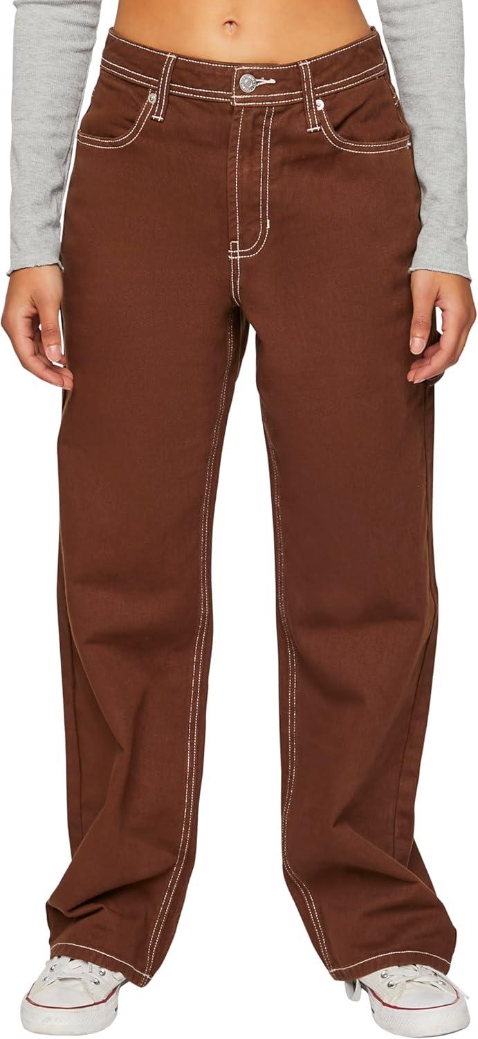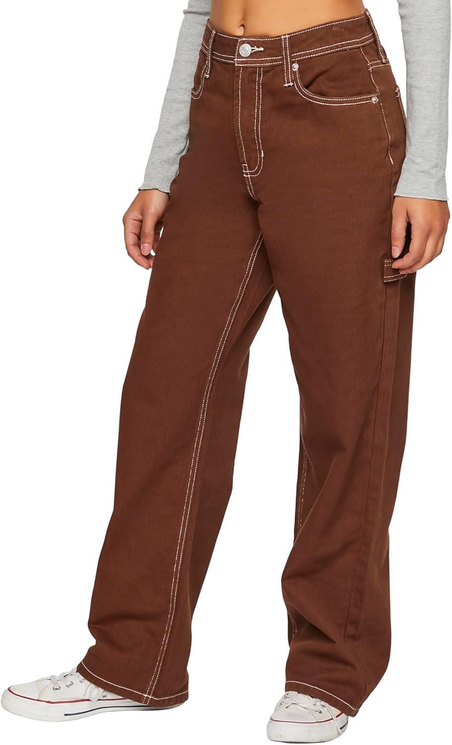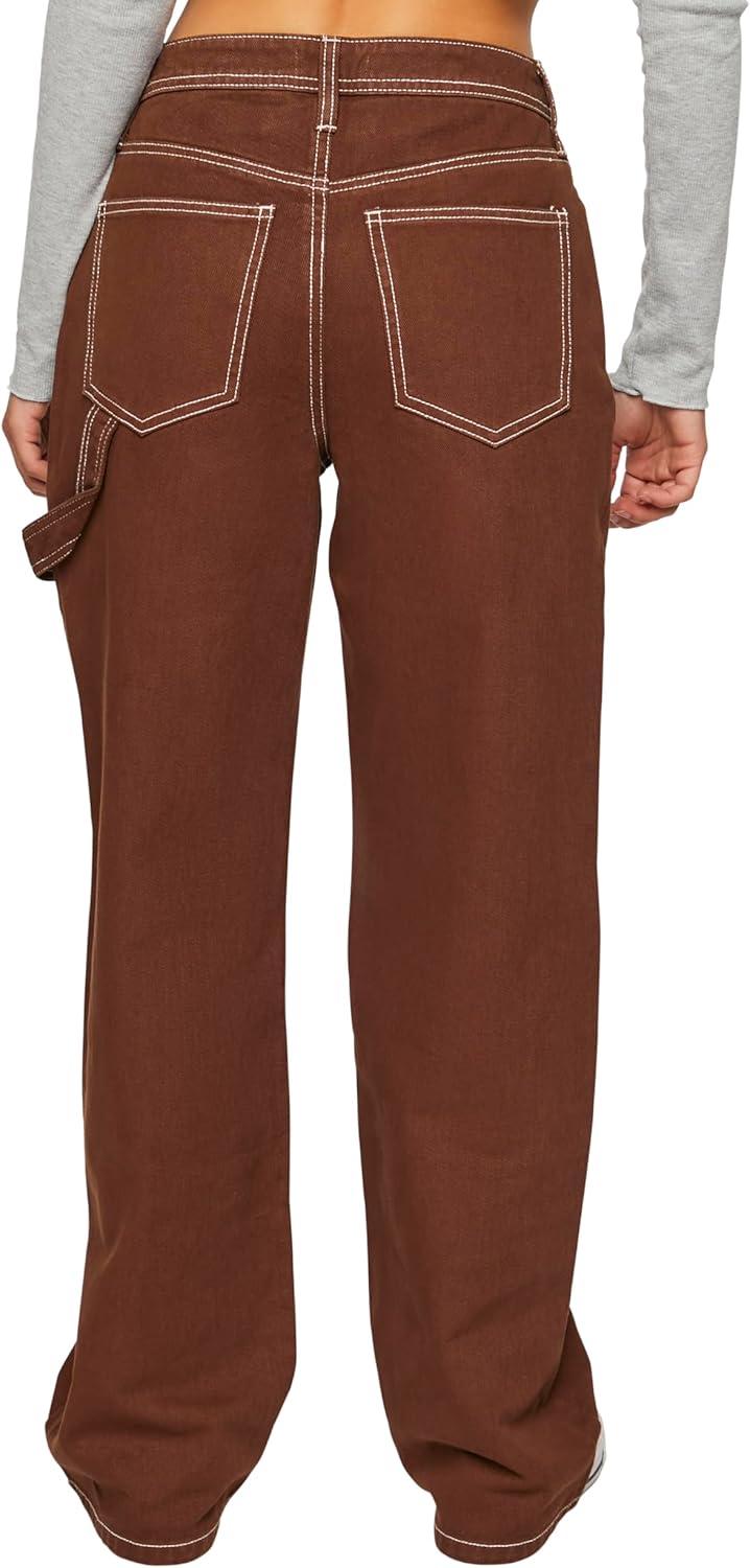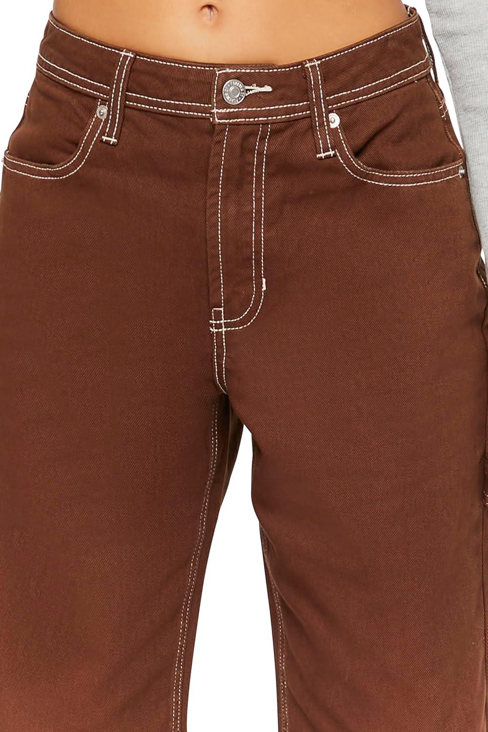 Forever 21 Women’s High-Rise Carpenter Dad Jeans(Brown)