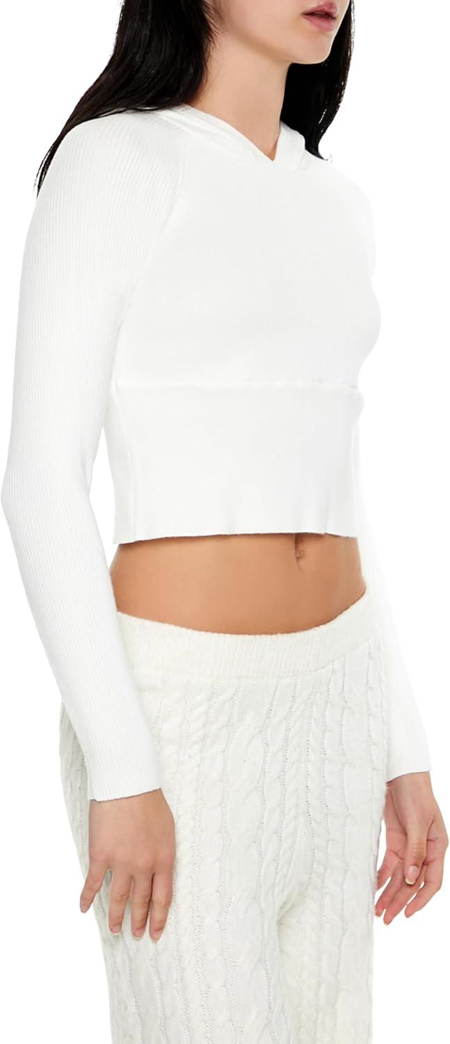 Forever 21 Womens Hooded Raglan Sweater(White)