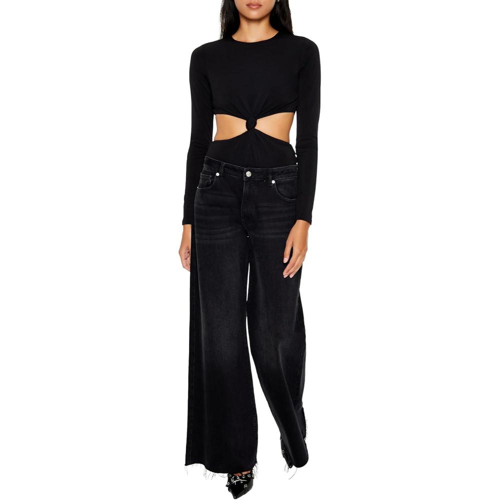 Forever 21 womens Knotted Cutout Bodysuit(Black)