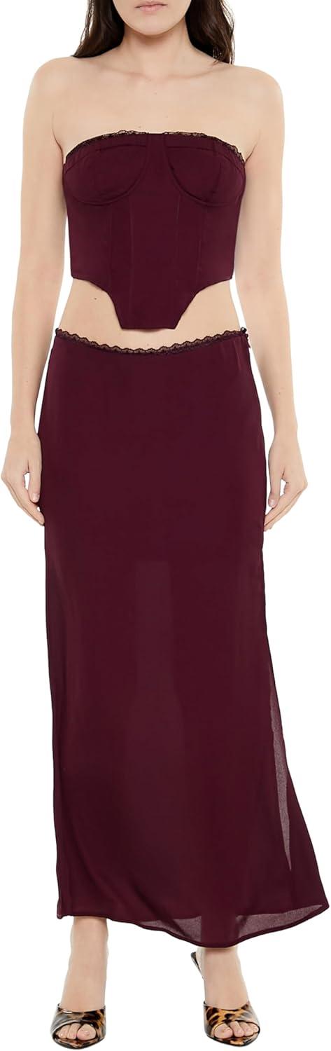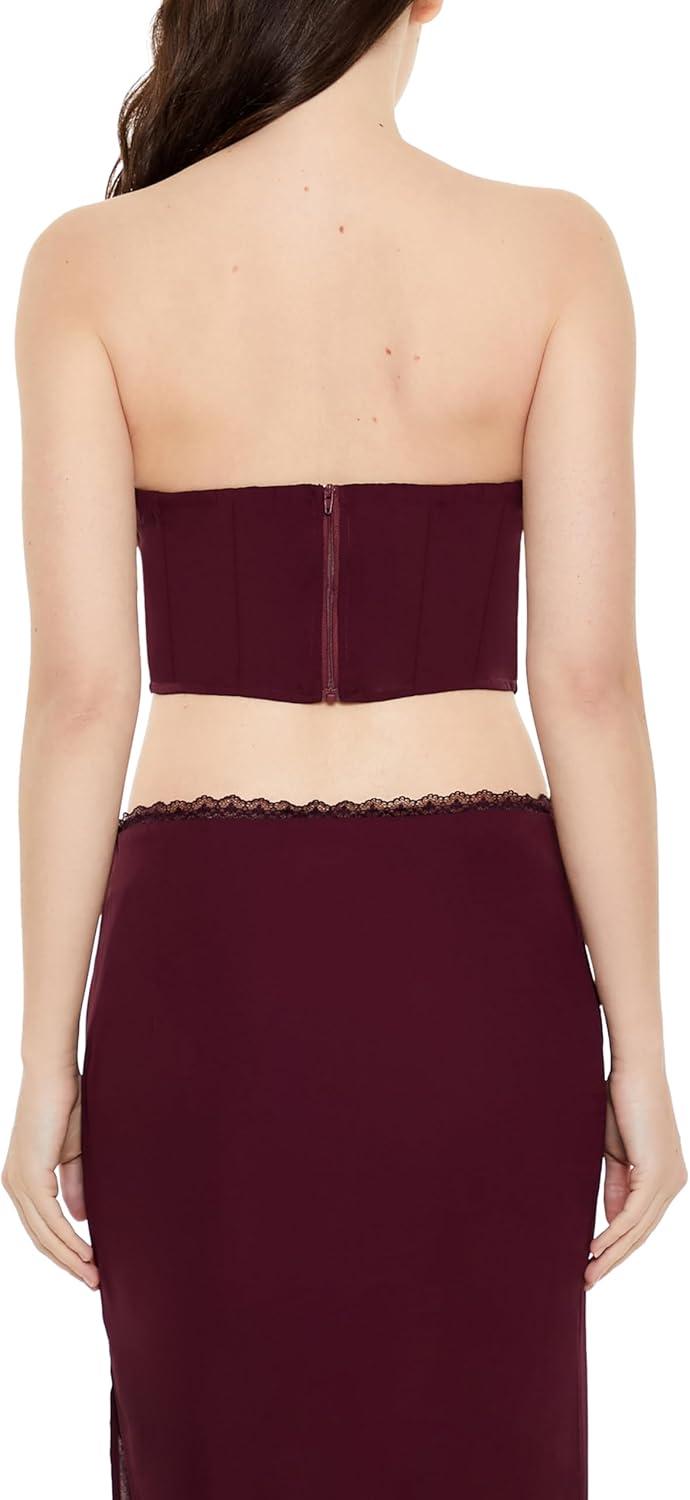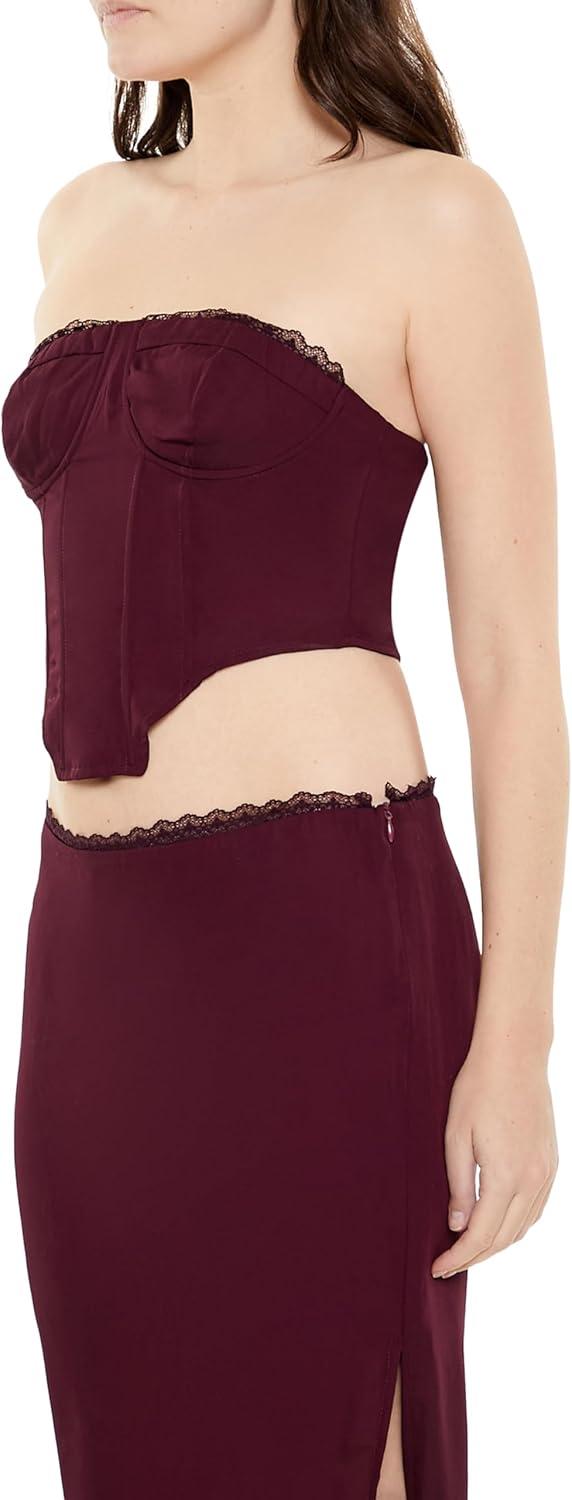Forever 21 womens Lace-trim Bustier Tube Crop Top(Red)