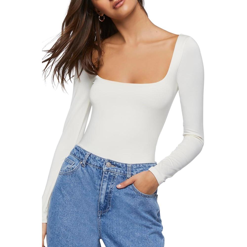 Forever 21 Women’s Long-sleeve Bodysuit(Cream)