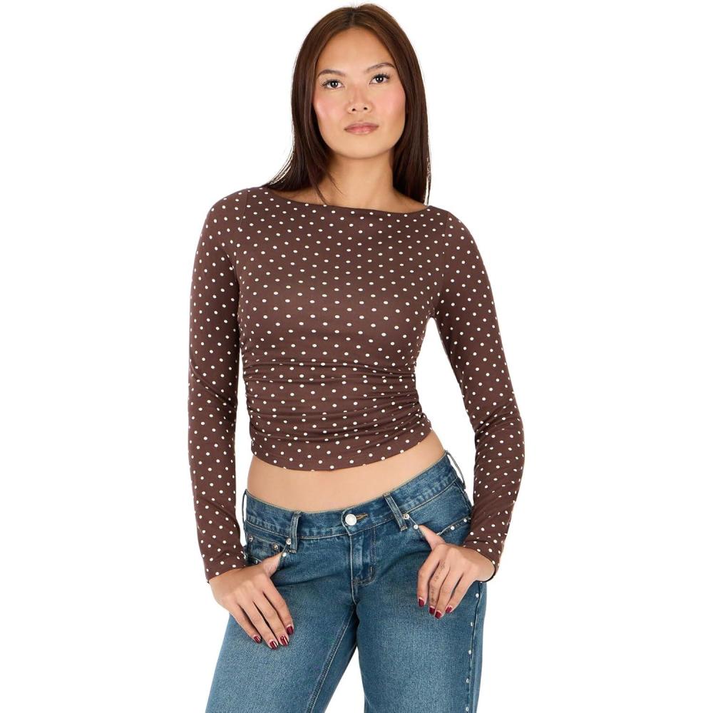 Forever 21 Womens Long Sleeve Top Front Doubled in Self(Brown)