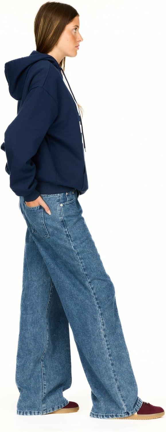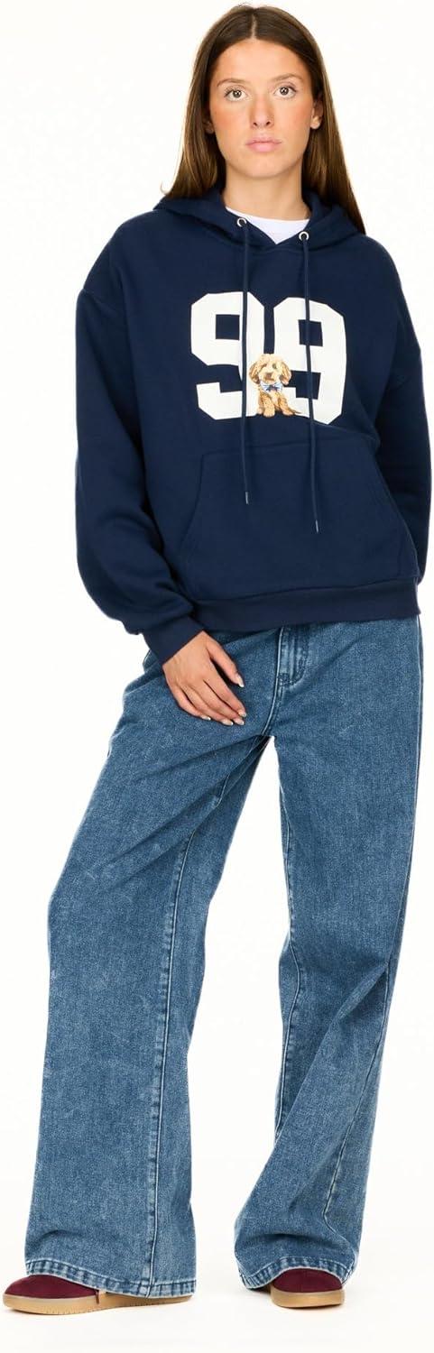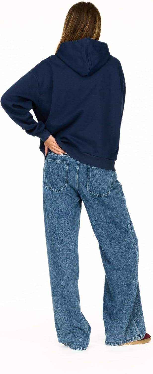 Forever 21 Women’s Oversized Fleece Hoodie Sweatshirt with Kangaroo Pocket(Navy)