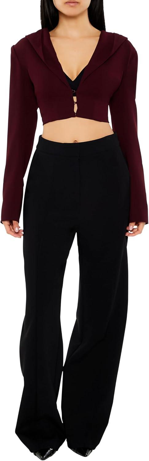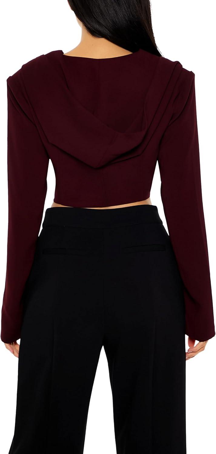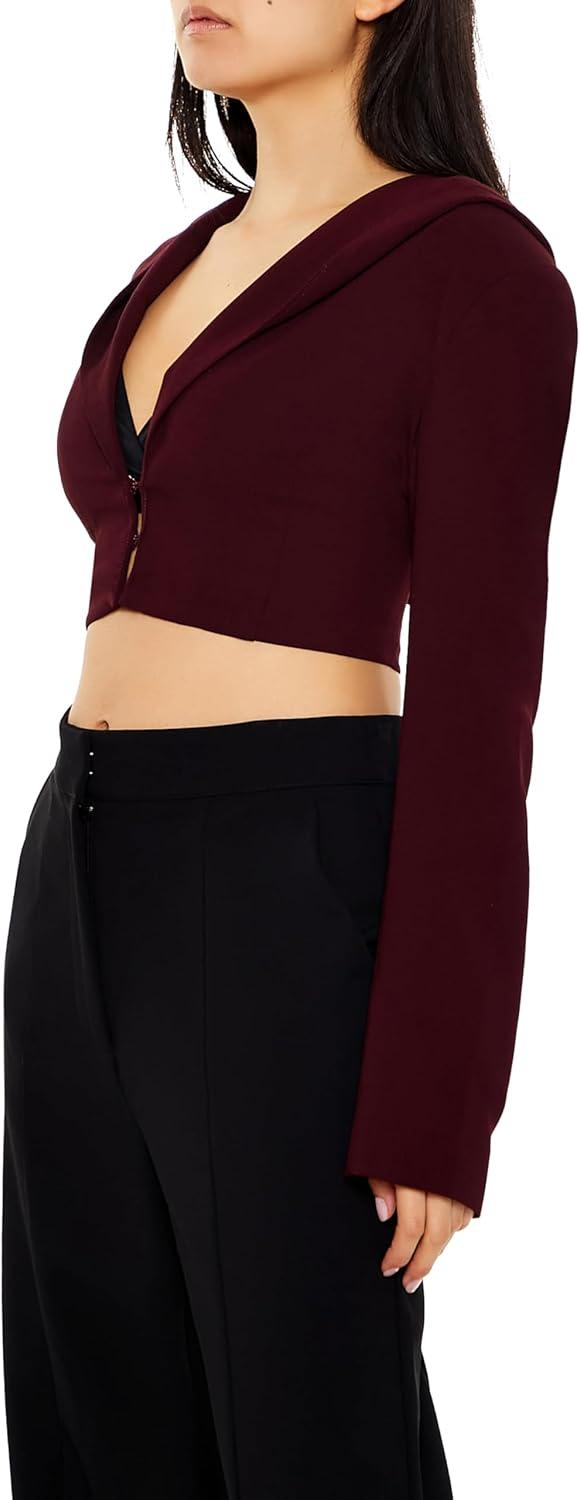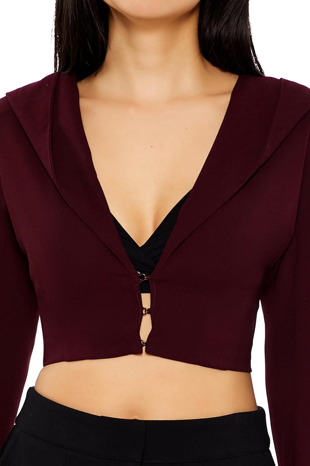 Forever 21 Women’s Plunging Hooded Cropped Blazer(Burgundy)