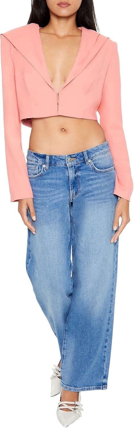 Forever 21 Women’s Plunging Hooded Cropped Blazer(Pink)