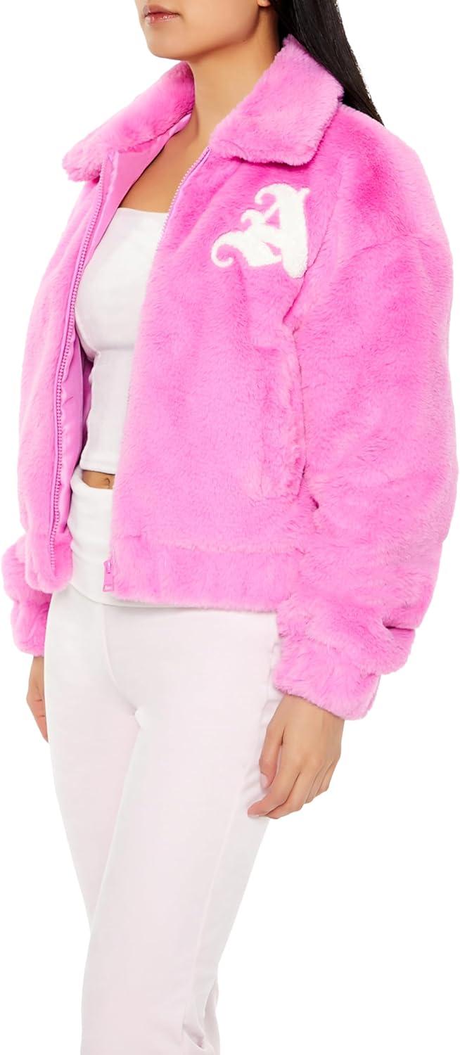 Forever 21 womens Plush Angel Baby Bomber Jacket(Peony)