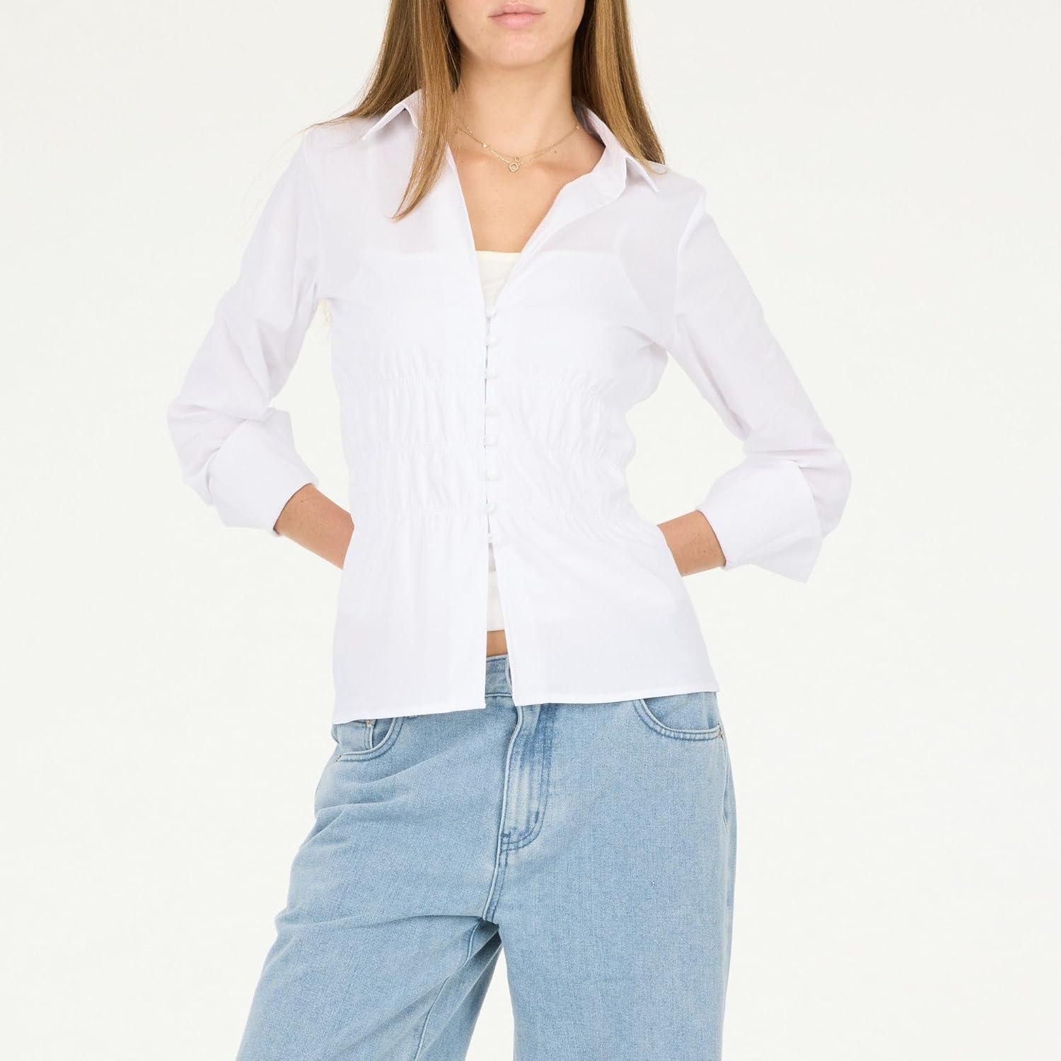 Forever 21 Women’s Poplin Button-Down Short Sleeve T-Shirt – Short Sleeve Collared Top with Self-Tie Back, 100% Cotton