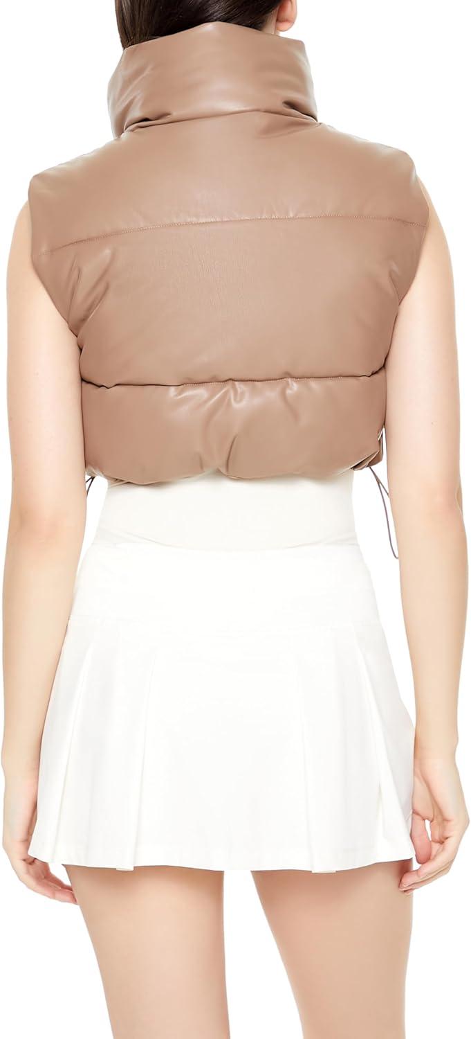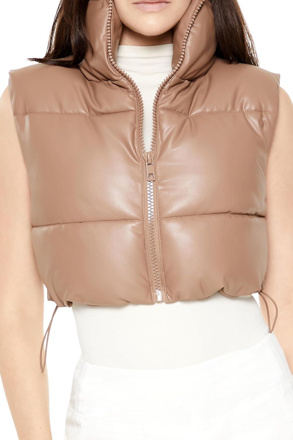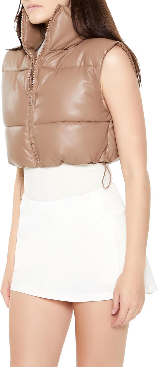 Forever 21 womens Quilted Faux Leather Cropped Vest(Cappuccino)