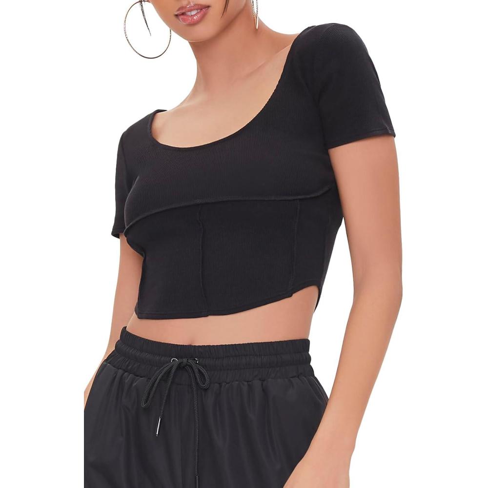 Forever 21 Women’s Ribbed Inverted-Seam Crop Top(Black)
