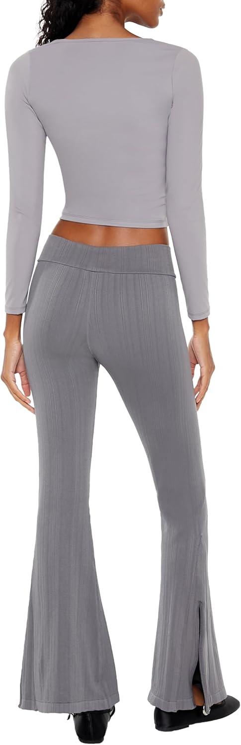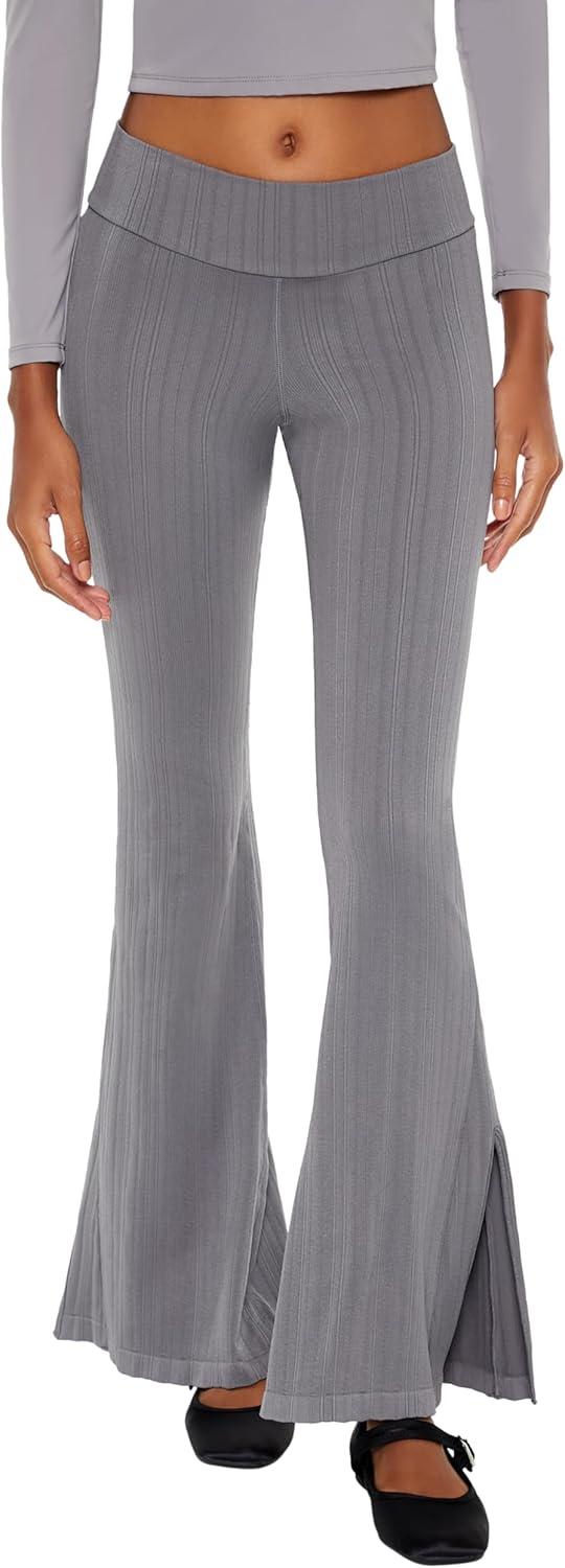 Forever 21 Women’s Seamless High-Rise Flare Pants(Dark Grey)