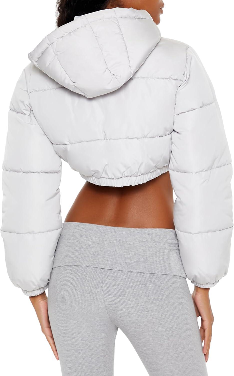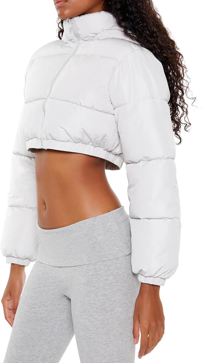 Forever 21 womens Super Cropped Puffer Jacket(Silver)