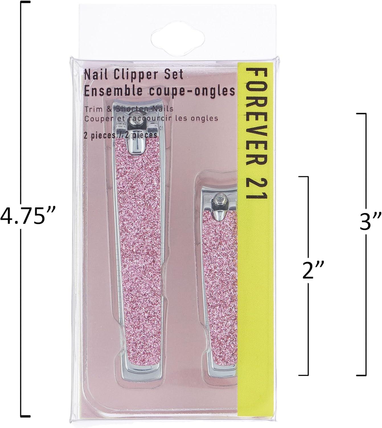 Nail Clippers Set – 2pc Soft Touch Pink Nail Clipper Value Pack, Big & Small Precision Nail Clippers Pack, Essential Manicure & Pedicure Tools(Pink Glitter)