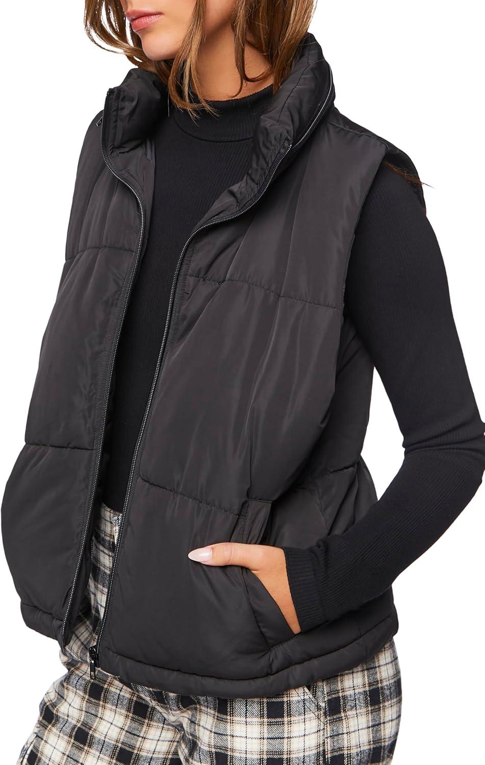 Forever 21 womens Zip-up Puffer Vest(Black)