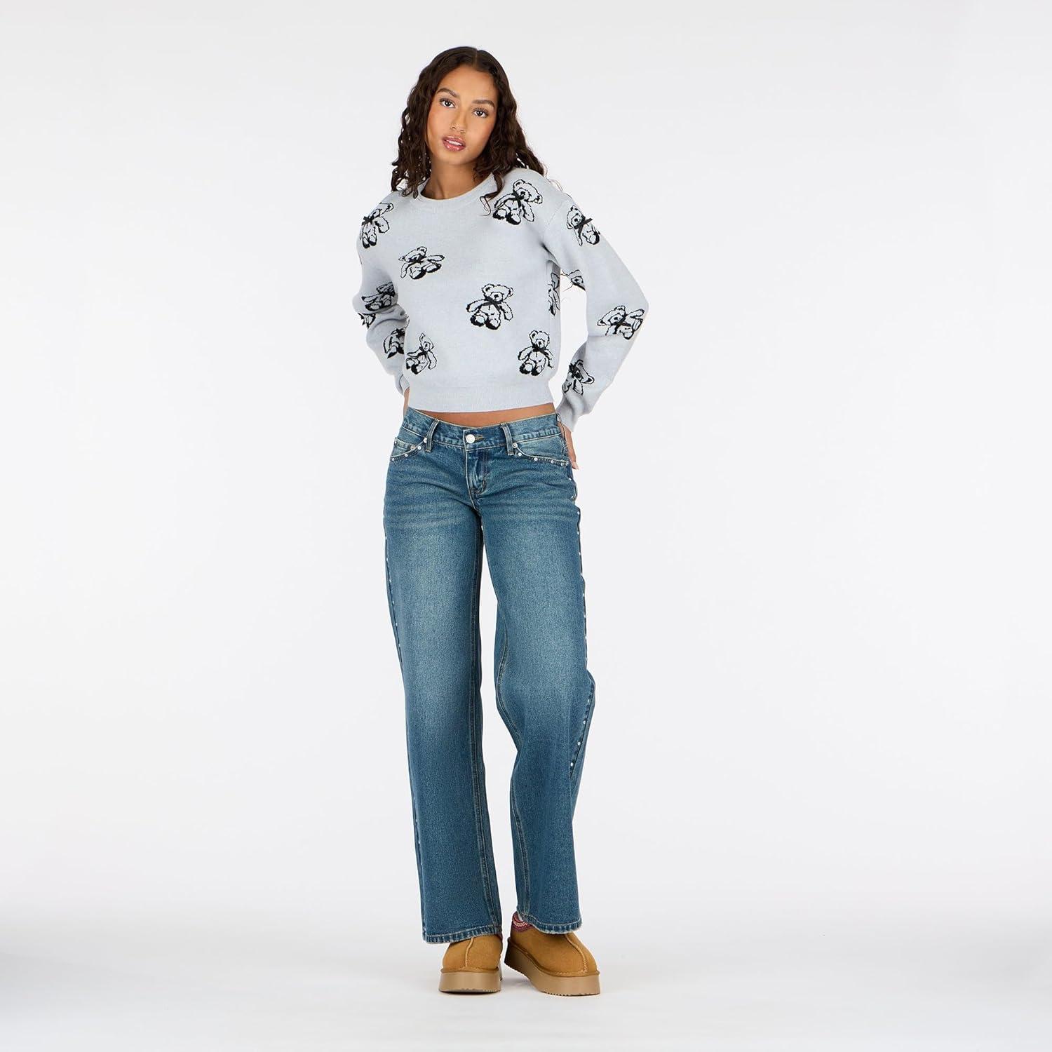 • Forever 21 Womens Low Rise Baggy Wide Leg Jeans with Studs(Dark Wash)