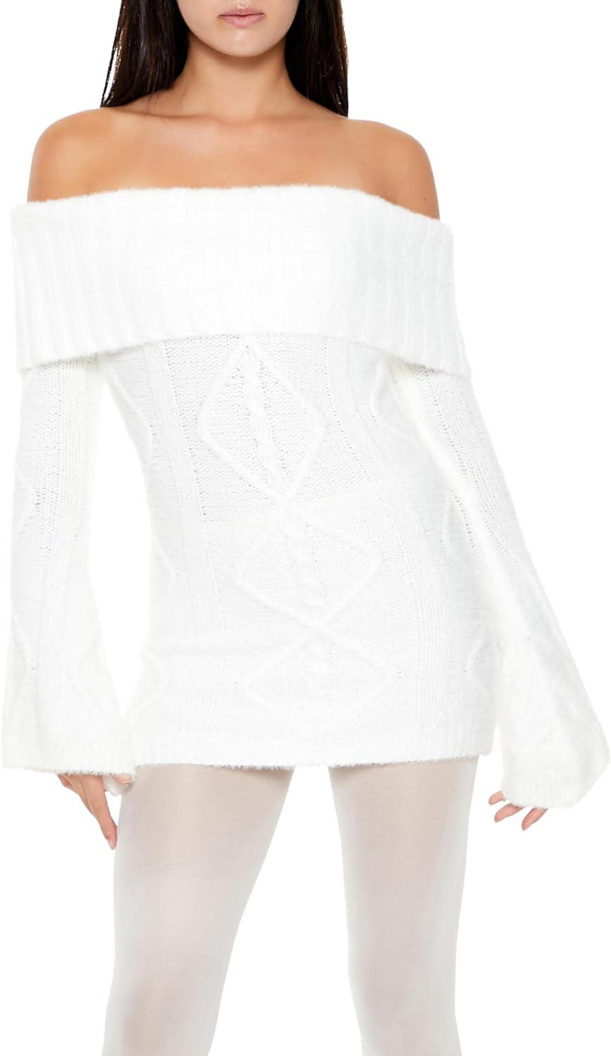 Forever 21 Women’s Long Sleeve Knit Sweater with New York Back Graphic(Ivory)