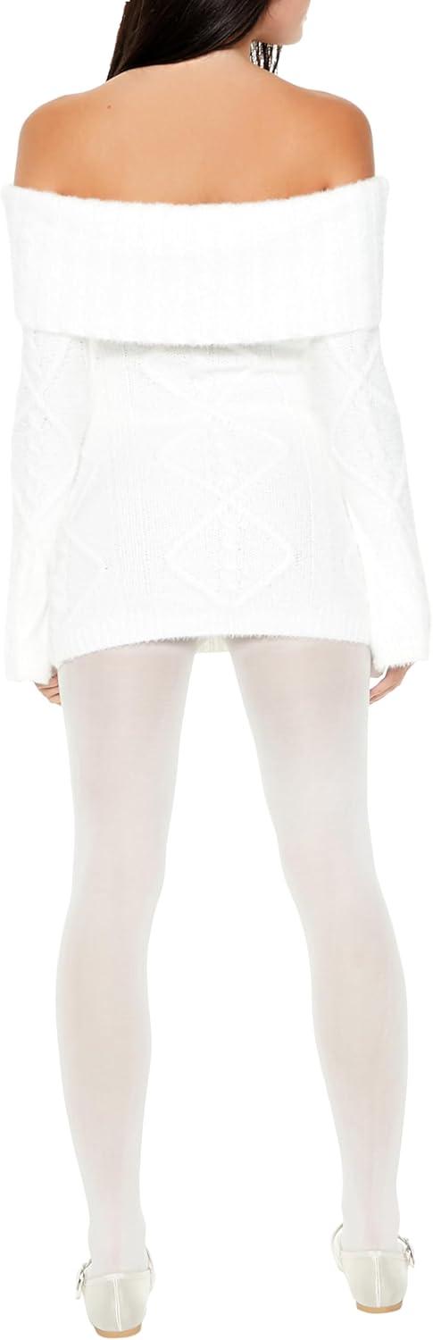 • Forever 21 Women’s Long Sleeve Knit Sweater with New York Back Graphic(Ivory)