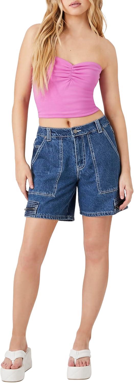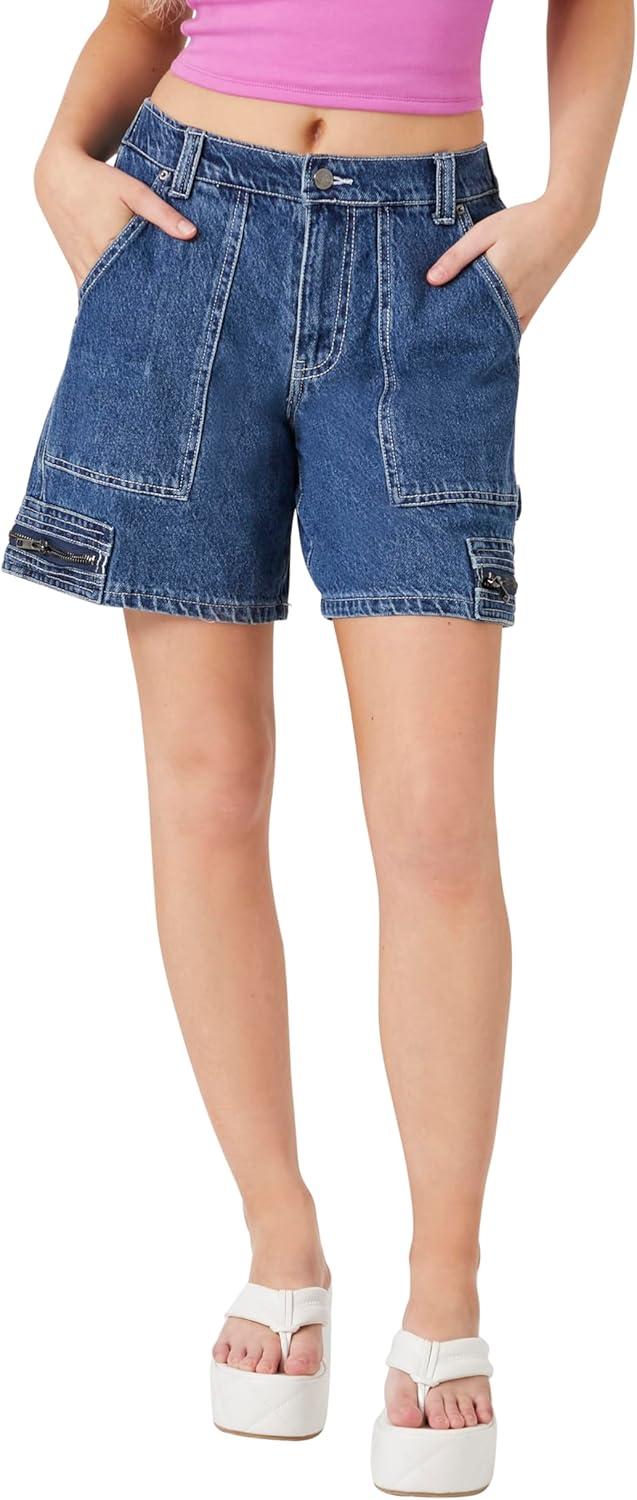 Forever 21 Women’s Denim Zip-Pocket Shorts(Blue)