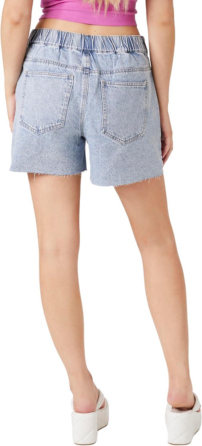 Forever 21 Women’s Raw-Cut Denim Shorts(Blue)